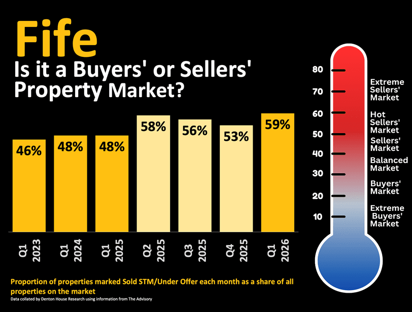 Understanding whether the current property market favours buyers or sellers is key to making the right call. If you follow my regular Fife property market updates, you will know one of the most dependable ways to assess the property market is by observing the percentage of homes marked as “Sold STM” or “Under Offer” compared to the total number of properties on the market.